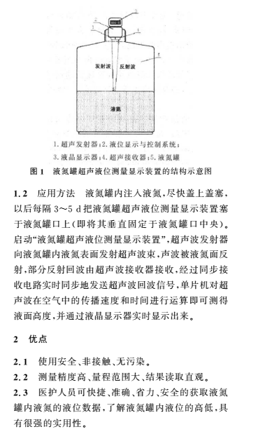 液氮罐超聲液位測量顯示裝置”,經臨 床實踐,取得了良好的效果。