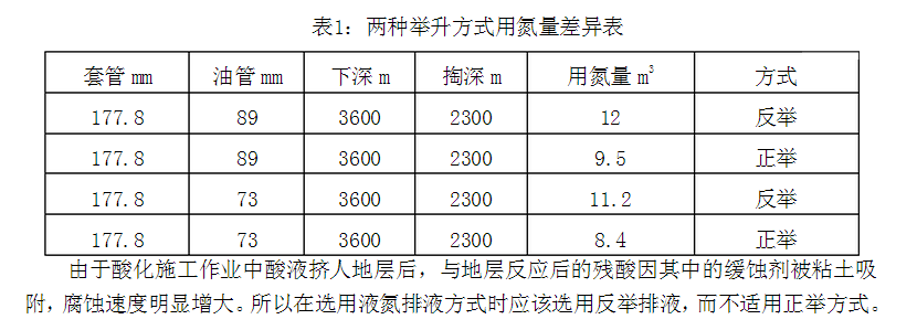 并且在套管放空氮氣后要及時用清水洗井,將環空中的殘酸洗出,以免油管過度腐蝕致使油管落井。